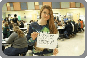 When you asked me if I thought I was beautiful on the inside as I was on the out, I didn’t know what to say. You were right when you said I didn’t think I was. One day, I hope I do think I’m beautiful on the inside as I am on the out. Thank you for giving me your sweaty bracelet. I’m going to wear it every day.” – T. H., Student