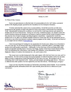 Veteran staff members indicated that you were the best assembly program that they had witnessed in their careers. Students told me that they were going to use your thoughts in their college essays. Others wanted you as our graduation speaker. I personally was moved by your thoughts.