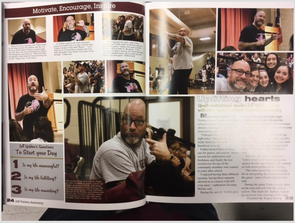 Jeff teaches administrators and school counselors how to lead their student and staff through the loss of one of their own. Moving forward after a suicide can be very tricky. This is why many communities have reached out to Jeff Yalden for help in making sense to the students and helping the staff through the grieving process.