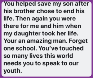 If you’re interested in teen suicide prevention visit Jeff’s online course for school communities: parents, teachers, counselors, teens, and school administrators. (Click Here)